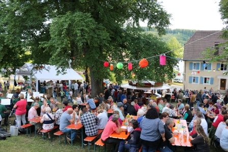 Der zweite Festtag wurde traditionell mit einem Gottesdienst unter freiem Himmel eingeläutet. Gestärkt durch Braten mit Spätzle und Salat stand am Nachmittag die Prämierung der schönsten Lampions auf dem Programm. Zahlreiche Kinder haben Ihre selbst gebastelten Lampions in allen Farben, Formen und Variationen dargeboten. So gab es Lampions in Form eines Fisches, Feuerwehrautos, Grills oder beispielsweise als Katze oder Pipi Langstrumpf. Die Vorschulkinder des Kindergartens Liel bastelten zudem Gespenster und Herzen. Über den ersten Platz bei der Prämierung konnte sich Bennet Meyer aus Liel mit seinem gebastelten Grill freuen. Die weiteren prämierten Plätze gingen an Hannah Grether (2. Platz), Lucy Waldkirch (3. Platz), Emma Hegebart (4. Platz) sowie David Götz (5. Platz). Mit einer Kleinigkeit an Süßigkeiten wurden alle teilnehmenden Kinder belohnt – die ersten fünf Plätze erhielten zusätzlich noch einen freien Eintritt ins Schwimmbad.